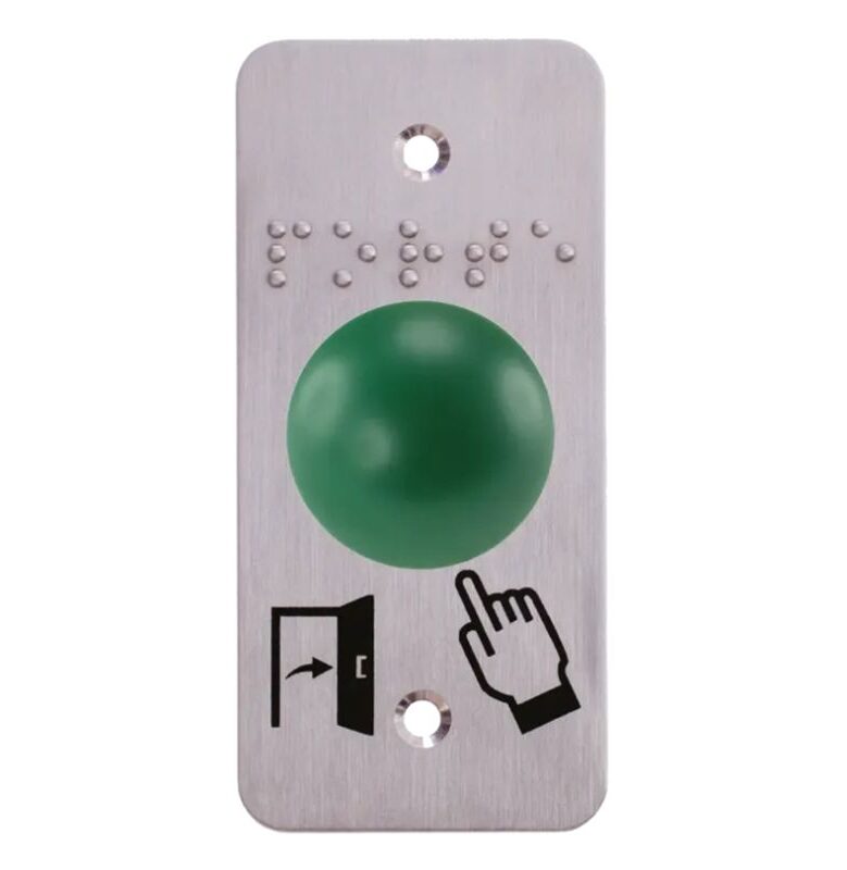 Accueil / Boutique / CONTROLES D'ACCES / ACCES / BOUTONS POUSSOIRS / Bouton poussoir dôme vert en aluminium, sur plaque étroite
