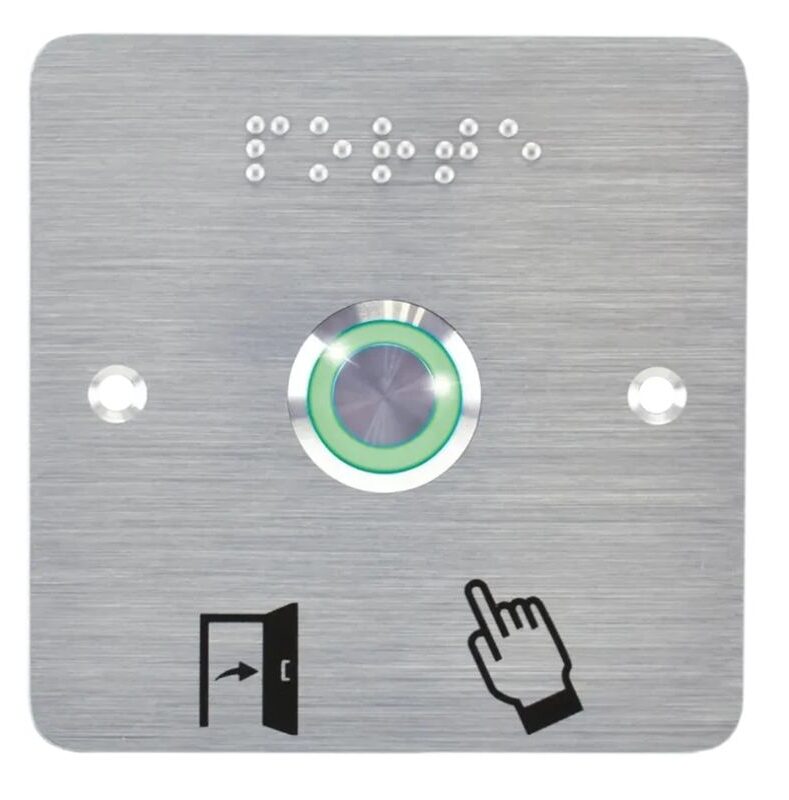 (précablé) + Plaque acier inox SSP201, 80 x 80 mm, perçage Ø 19 mm, pictogrammes « Porte + doigt » et « PORTE » en braille