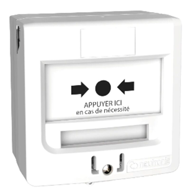 Accueil / Boutique / INCENDIE / PERIPHERIQUES / DECLENCHEURS MANUELS / DM 1 contact en saillie ou encastrable BLANC « APPUYER ICI » + CAPOT