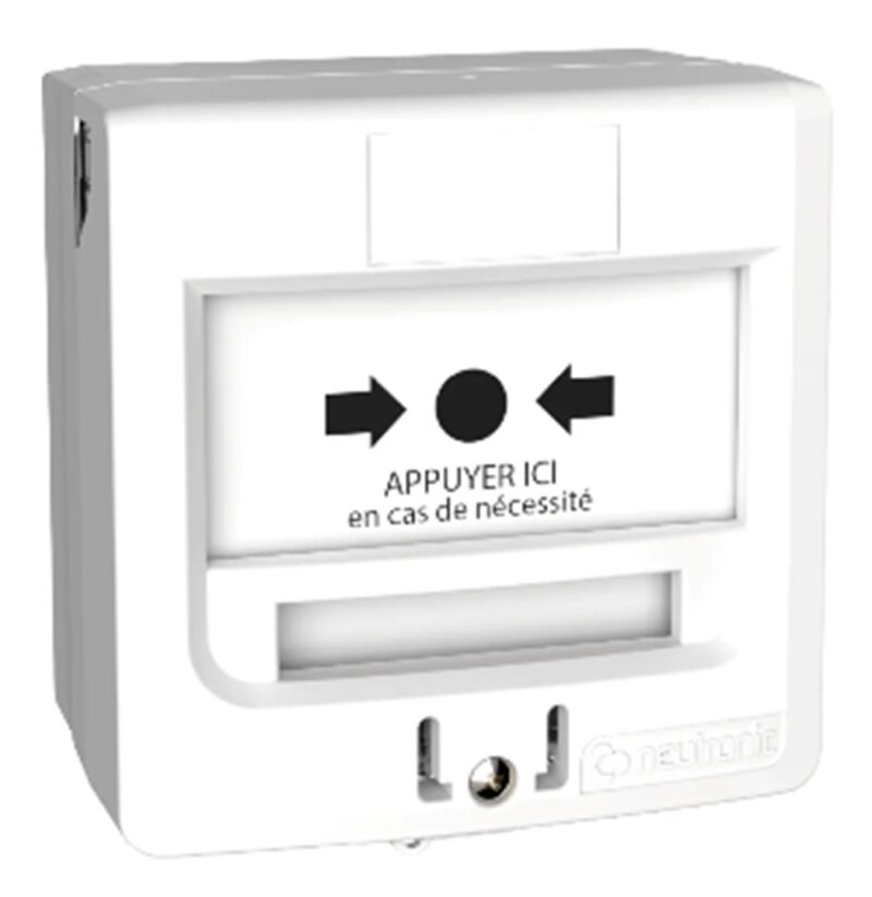 Accueil / Boutique / INCENDIE / PERIPHERIQUES / DECLENCHEURS MANUELS / DM 1 contact en saillie ou encastrable BLANC « APPUYER ICI »