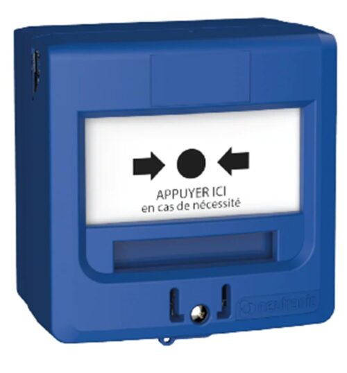 Accueil / Boutique / INCENDIE / PERIPHERIQUES / DECLENCHEURS MANUELS / DM 2 contacts en saillie ou encastrable BLEU « APPUYER ICI » + CAPOT