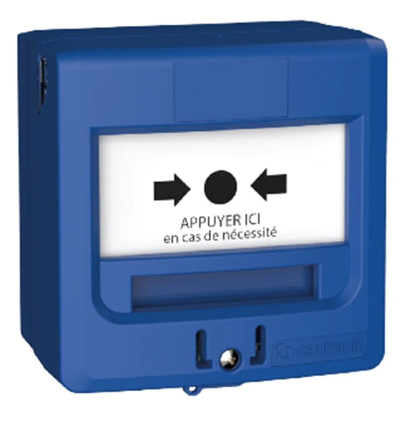 Accueil / Boutique / INCENDIE / PERIPHERIQUES / DECLENCHEURS MANUELS / DM 2 contacts en saillie ou encastrable BLEU « APPUYER ICI »