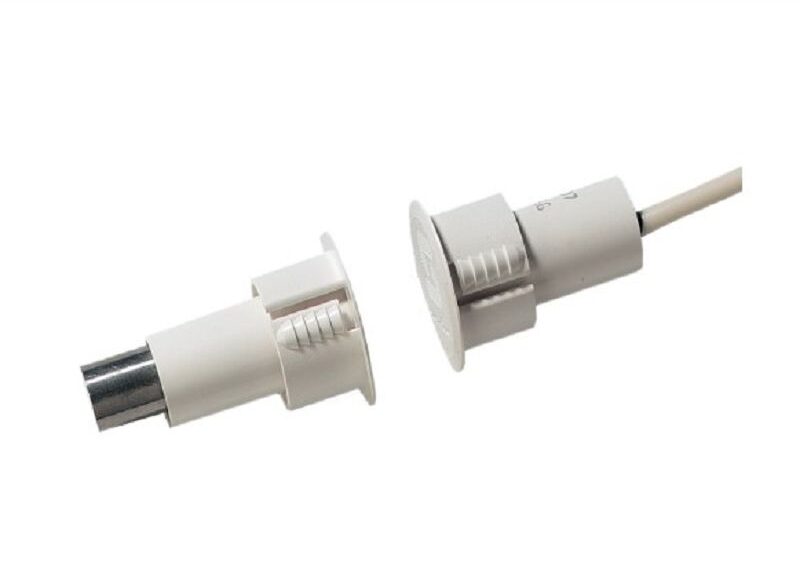 Accueil / Boutique / INTRUSION / DETECTIONS FILAIRE / CONTACTS D'OUVERTURE / Contact à encastrer pour huisseries acier, 40 x ø 25.4 mm, sortie sur 4 fils de 2 m, ouverture 9 mm maximum