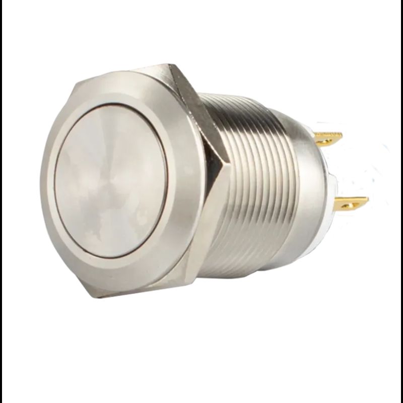 Accueil / Boutique / Bouton poussoir, Ø 19 mm, en acier inoxydable, cosses à souder, contact NO+NC