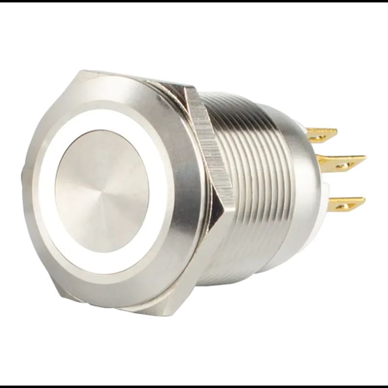 Accueil / Boutique / Bouton poussoir, Ø 19 mm, en acier inoxydable, cosses à souder, halo blanc