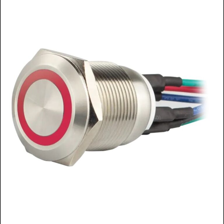Bouton poussoir, Ø 19 mm, en acier inoxydable précâblé, halo rouge